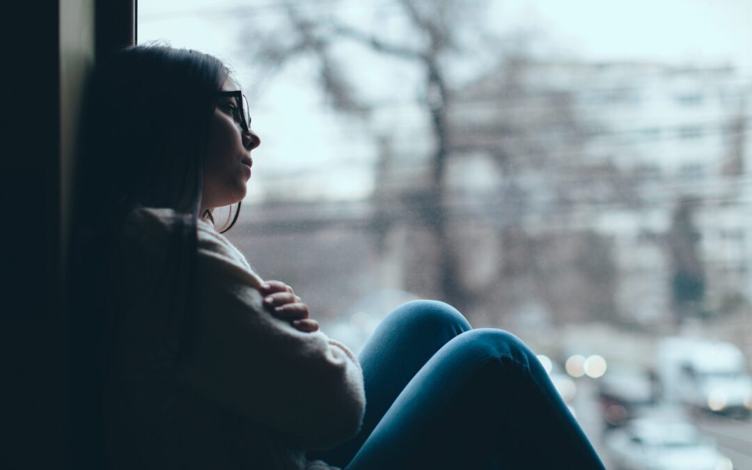 Une fille avec un trouble d’anxiété sociale regarde par la fenêtre